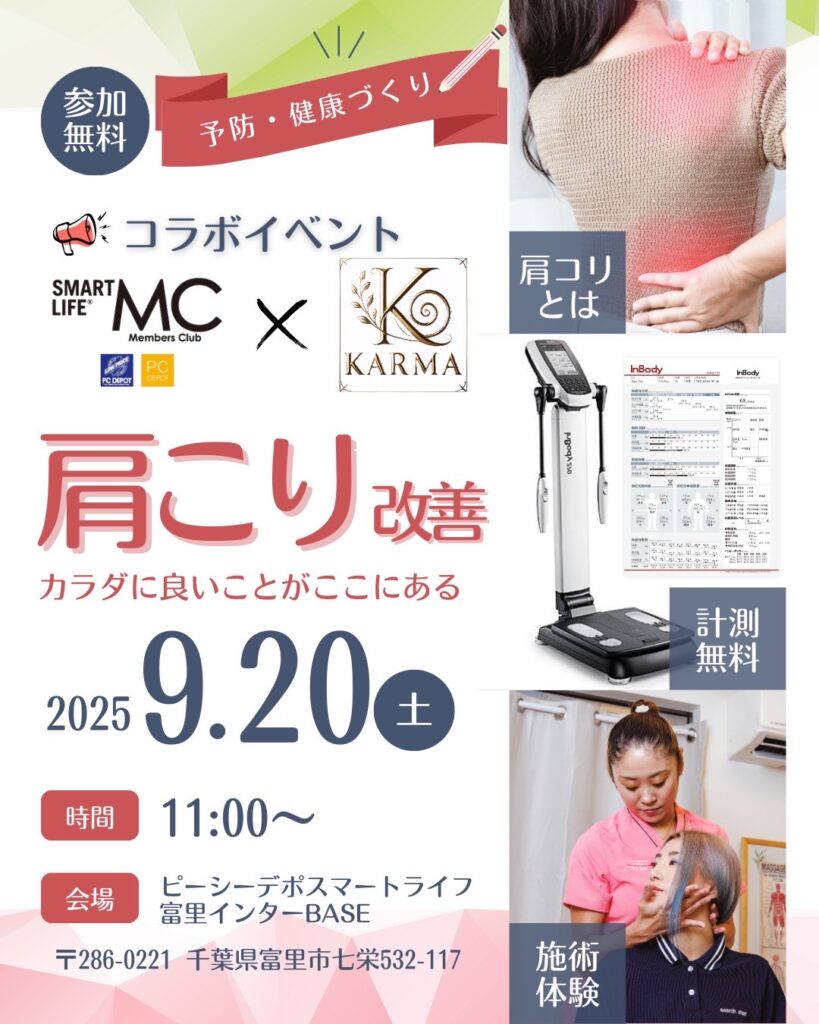 9/20「肩痛改善体験」イベント開催と営業時間変更について
